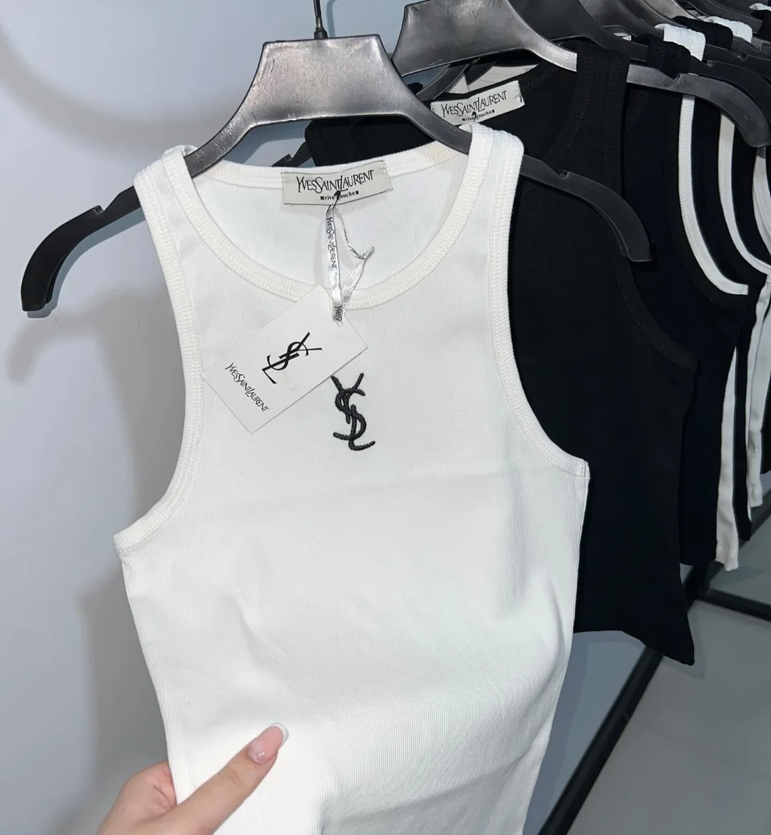 تاپ گلدوزی YSL رنگ سفید و مشکی سایز ۳۶_۴۴